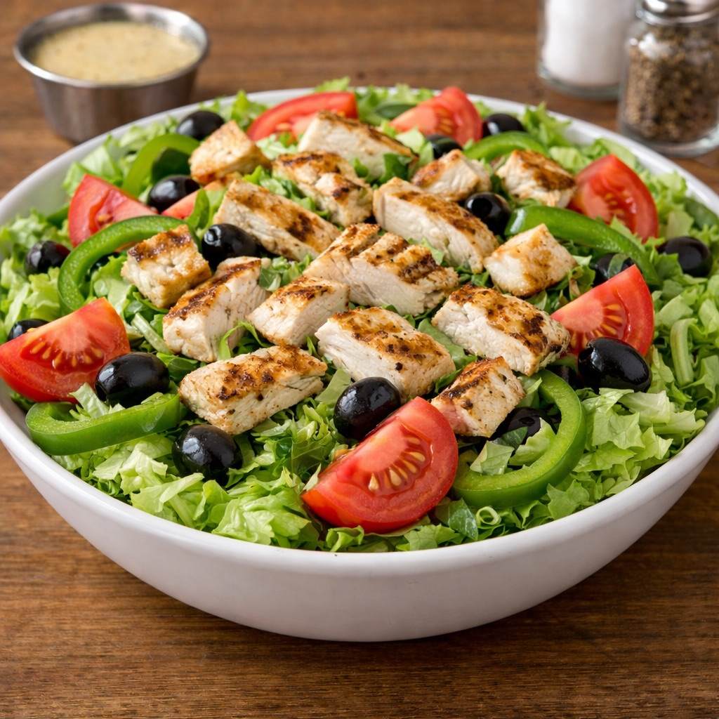 Grilled Chicken Tossed in Buffalo, Lettuce, Banana Peppers, Cheese, and Tomato.